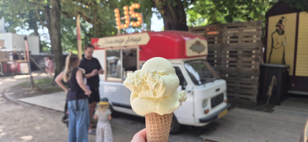 IJs werkt laagdrempelig en feestelijk. Gasten lopen langs voor een ijsje, maken een praatje en genieten van het moment.